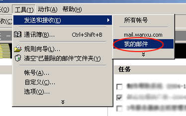10. 然后即可通过如下图所示的菜单来进行收发邮件的功能: