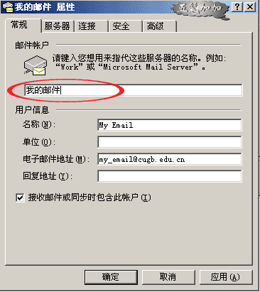8. 在打开的属性窗口中,常规选项可以更改该邮件的名字,如下图,以便记忆。